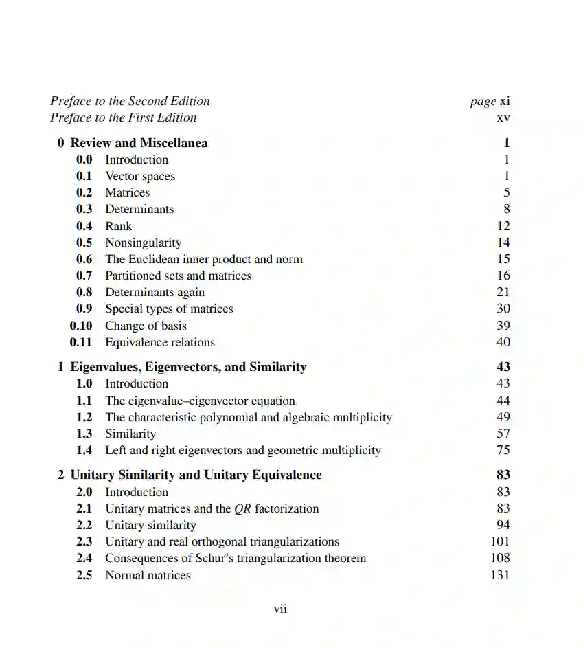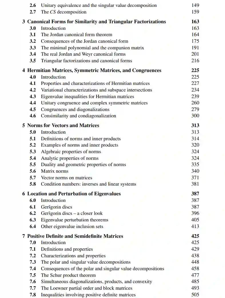线性代数和矩阵理论是数学和物理科学的基本工具,同时也是研究的肥沃领域。这个备受赞誉的教材的新版采用规范形式作为统一主题,展示了经典和近期矩阵分析的结果,并证明了它们在各种应用中的重要性。作者们对第一版进行了彻底的修订、更新和扩展。该书开头有一部分延长的有用概念和事实的总结,并包含许多新的主题和特点,例如: