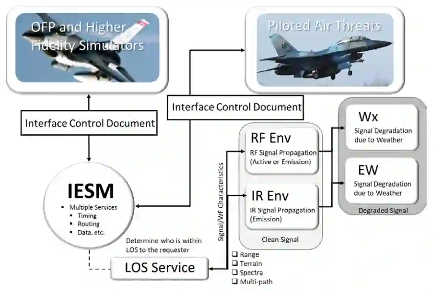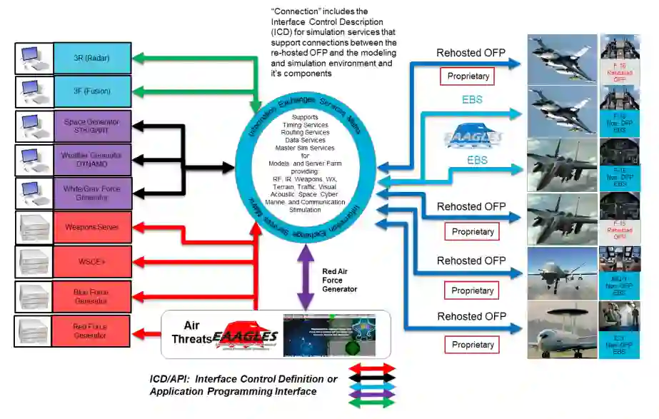 (2) 开放式架构,实现不同保真度的模型和模拟的可组合性和集成性,包括蓝、红飞机在环作战员、威胁、武器、地形和天气。