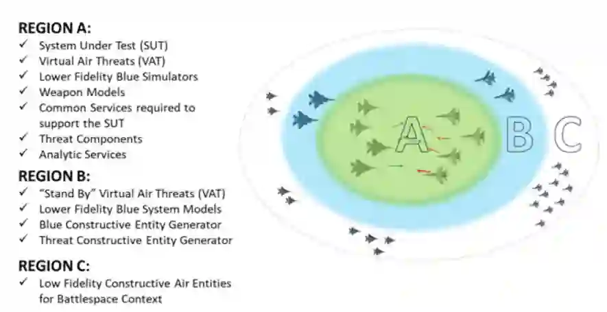 作战空间密度/复杂性: 合成靶场必须能够生产大量不同复杂程度的资产,以便在可靠的战场环境中为被测系统(SUT)提供适当的 "馈电",支持必要和适当的测试条件。这些 "馈送 "是分布式环境中各种仿真能力的虚拟和建构实体的组合。