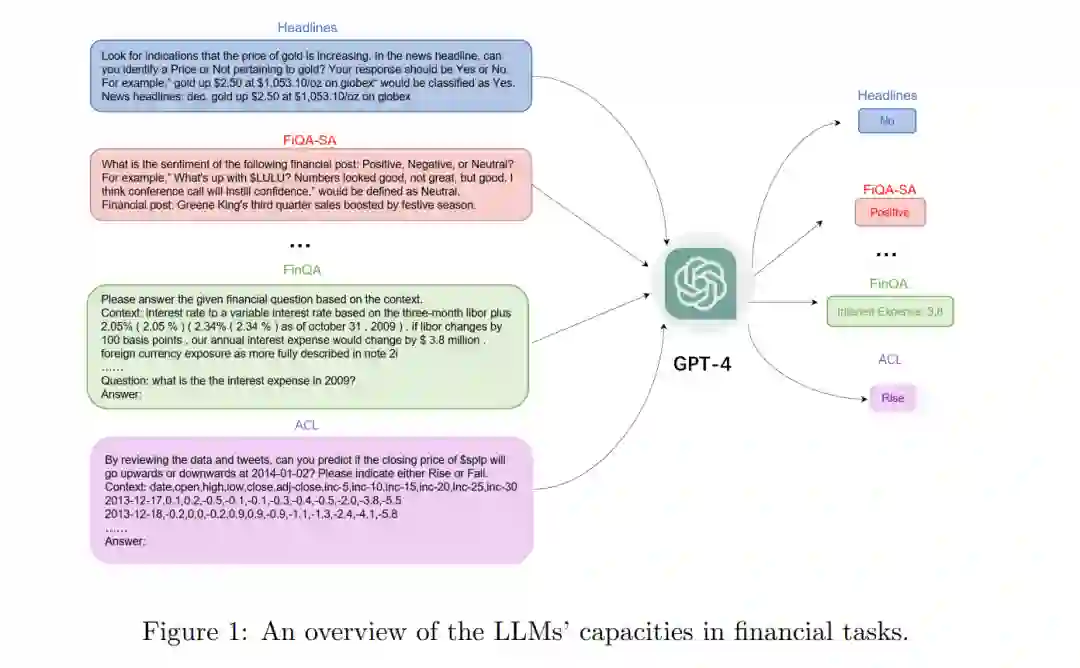 过去几年中,如OpenAI的GPT系列等大型语言模型(LLMs)在自然语言处理(NLP)领域取得了重大进步。这些模型的发展标志着在理解和生成自然语言的AI技术中的一个重要里程碑。随着计算能力的增强和算法的改进,LLMs展现了在理解复杂情境、回答问题和撰写内容方面的惊人能力。特别是在金融领域,LLMs的这些能力正逐渐显示出它们巨大的潜力【18, 125, 126】。