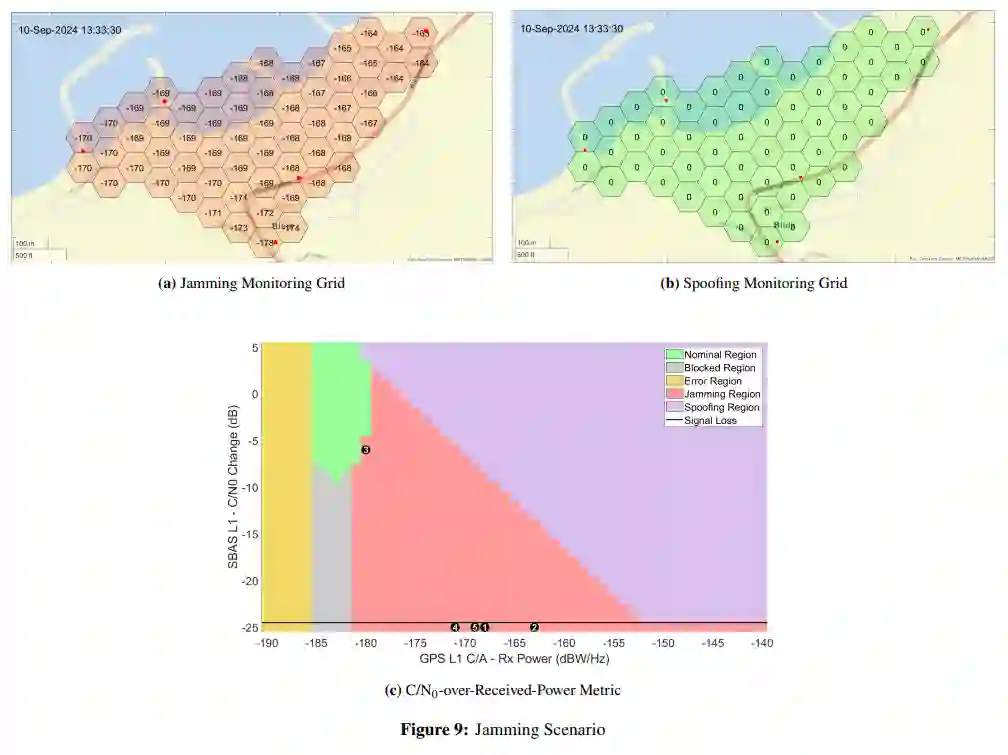 全球导航卫星系统(GNSS)信号的干扰与欺骗现象日益普遍,尤其与东欧和中东持续冲突相关。尽管这类射频干扰(RFI)事件通常局限于冲突区域,但其附带影响可蔓延至广阔地域,跨越数十至数百英里。商业领域中射频干扰事件频发的趋势凸显了对强大检测与特征分析系统的迫切需求,以保障航空、海事等依赖GNSS的行业安全。先前研究表明,接收功率与信噪比指标能有效识别射频干扰,因其可捕捉接收信号强度与底噪水平间的平衡。基于这些指标,商用GNSS接收机无需硬件改造即可检测并分析干扰和欺骗事件。有效监测范围受接收机灵敏度影响,当部署为网络时,此类接收机可为陆、海、空应用提供关键射频干扰态势感知。本文提出一种低成本监测(LCM)网络实施方案,采用2024年干扰测试数据,演示其检测与分析GNSS干扰和欺骗的能力。