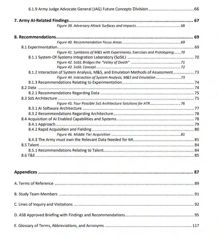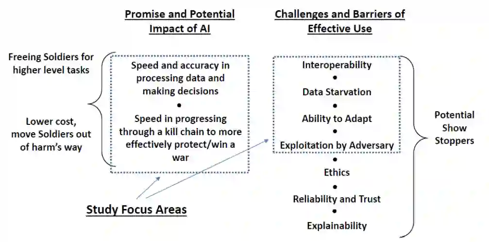 为了进行这项研究,ASB组建了一个研究小组,成员包括建立人工智能系统和指导人员,以及在实验室、学术界、工业界和军方有经验的人员。该团队还得到了负责人工智能实施的陆军人工智能任务组以及陆军研究实验室(ARL)和陆军夜视局高级政府联络员的协助,他们帮助约束该研究并为陆军的人工智能实施提供指导。在收集数据的同时,研究小组还会见了来自政府、工业和学术界各组织的130多名人士。