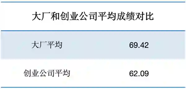 从大厂和创业公司的平均成绩来看,大厂研发的大模型平均成绩为69.42分,创业公司研发的大模型平均成绩为62.09分,差值约6.33分,较11月份差距在略有增大。这说明大厂在大模型竞争中长期资源投入方面有一定优势。