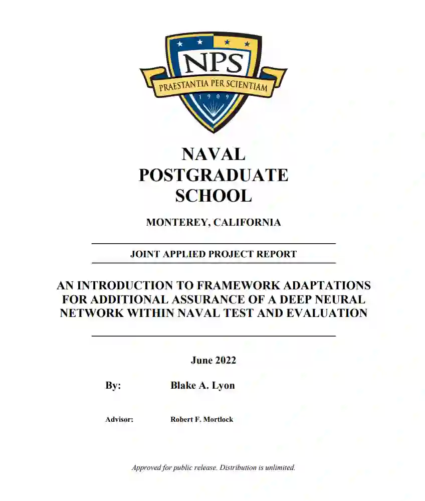随着机器学习应用越来越能够执行安全关键功能,海军部将开始把它们集成到有人和无人平台中。不过,在海军部(DON)目前的测试与评估(T&E)框架下,DON试图测试的机器学习算法将没有适当的工件来表明算法将以安全和合乎道德的方式可靠地执行任务。本研究介绍了海军部适航性的基本原理和当前的 T&E 框架,然后回顾了一个代理测试项目,以研究如何调整当前的海军部 T&E 框架,为机器学习算法的实战提供更多保证。