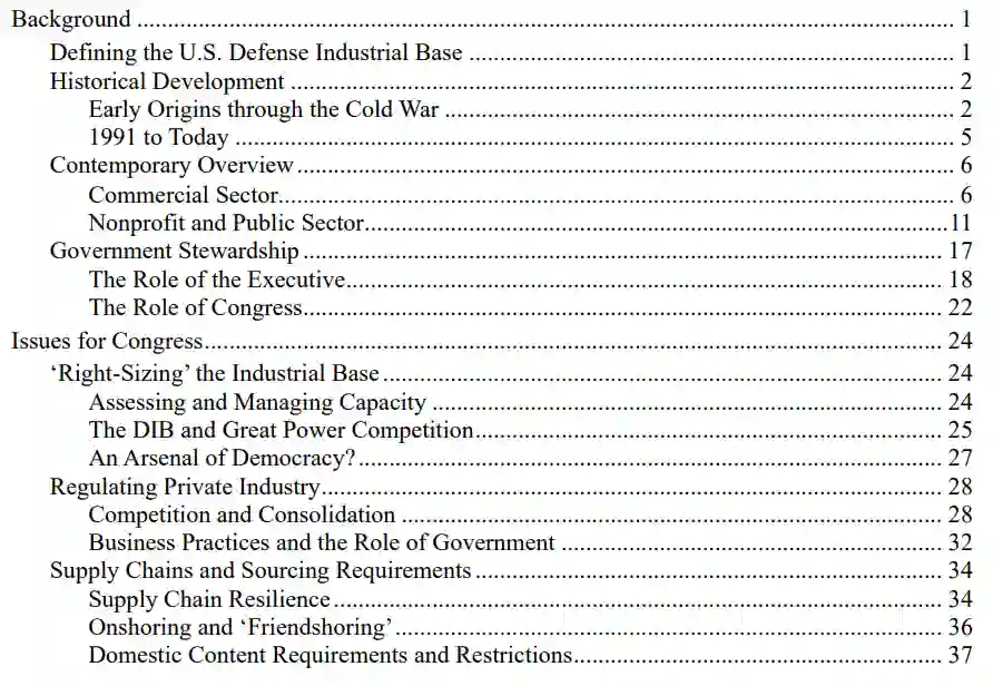 自第二次世界大战以来,美国政府投入了大量的资源和关注,以确保国防工业能够满足国防需求。在国防部和行政部门内部,有各种各样的组织和计划来监控、保护和加强工业基础。国会每年拨款数千亿美元,用于从国防工业基础供应商处采购材料、产品和服务,并制定和资助了一系列旨在评估或修改国防工业基础整体各个方面的计划。国会还对行政部门行使工业基地相关职能的情况进行例行监督。