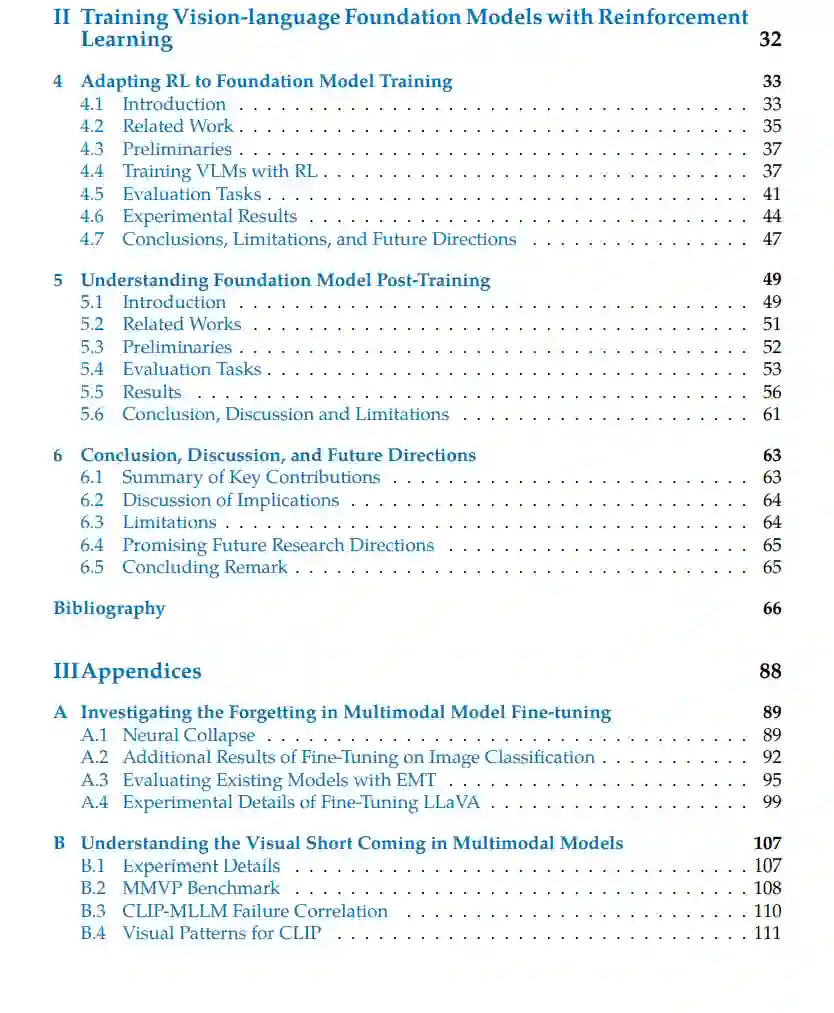 本论文研究了多模态基础模型在开发和训练中的关键挑战,重点关注当前监督微调(SFT)方法的局限性,并探索强化学习(RL)在实现鲁棒泛化方面的潜力。研究工作分为两个主要部分:第一部分:理解监督微调下多模态基础模型的局限性尽管多模态大语言模型(MLLMs)在基准任务上表现出色,但在需要更深层次理解或适应新情境的看似简单任务中,它们常常表现出令人惊讶的弱点。本论文首先研究了 MLLMs 中的灾难性遗忘现象,即在新任务上进行微调可能导致模型在先前学习任务上的性能显著下降。我们引入了多模态评估框架(EMT),这是一种新颖的评估方法,旨在系统性地评估这种遗忘现象。研究结果表明,即使是利用强大预训练视觉编码器的 MLLMs,在经过 SFT 后,在基本图像分类任务上的性能也会显著下降。此外,我们深入探讨了 MLLMs 在视觉方面的具体缺陷。我们提出了多模态视觉模式基准(MMVP),这是一组精心设计的视觉问答任务,旨在探测这些模型的视觉基础能力。结果显示,当前最先进的 MLLMs 存在系统性缺陷,突显了底层视觉编码器(如 CLIP)的弱点与整体模型性能之间的强相关性。这些发现表明,当前的 SFT 方法虽然在任务特定适应方面有效,但可能不足以赋予 MLLMs 强大的视觉理解能力和保留先前习得知识的能力。第二部分:利用强化学习实现鲁棒泛化认识到 SFT 的局限性后,本论文进一步探索了强化学习(RL)在实现更鲁棒和可泛化的多模态智能方面的潜力。我们提出了一种新颖的框架,用于通过 RL 微调大型视觉-语言模型(VLMs),使其能够在需要视觉理解和语言推理的任务上进行端到端训练。该框架的一个关键组成部分是引入了思维链(CoT)提示,利用 VLMs 固有的推理能力来促进更高效的探索和学习。我们对 RL 和 SFT 进行了对比分析,重点关注对未见规则变化和新视觉情境的泛化能力。结果表明,与 SFT 相比,RL 微调始终能带来更优越的泛化性能。通过 RL 训练的模型在规则修改的任务上表现更好,能够更有效地适应视觉输入的变化,甚至展现出增强的底层视觉识别能力。此外,我们研究了推理时计算的作用,证明在 RL 训练期间增加验证迭代次数可以进一步提高泛化能力。这突显了 SFT 虽然为指令遵循提供了必要的基础,但 RL 对于在复杂、动态环境中实现鲁棒、适应性强的性能至关重要。总结本论文提供了有力的证据,表明当前基于 SFT 的多模态基础模型训练存在局限性,并展示了 RL 在克服这些局限性方面的巨大潜力,为开发更具泛化能力和智能的 AI 系统铺平了道路。