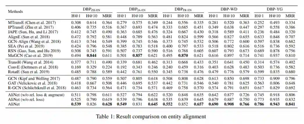 图神经网络由于具有识别同构子图的能力,已经成为一种强大的基于嵌入的实体对齐范式。然而,在真实知识图(KGs)中,通常是对应的实体 具有非同构的邻域结构,这很容易导致GNN产生不同的表示。为了解决这一问题,我们提出了一种新的KG对齐网络,即AliNet,旨在以端到端方式缓解邻域结构的非同构性。由于模式异构性,对等实体的直接邻域通常是不相似的,AliNet引入了远程邻域来扩展它们的邻域结构之间的重叠。它采用了一种注意机制,以突出有益的遥远的邻域和减少噪音。然后,利用门控机制控制直接和远处邻域信息的聚合。我们进一步提出了一个关系损失来细化实体表示。我们进行了深入的实验,详细的研究和分析的五个实体对齐数据集,证明了AliNet的有效性。