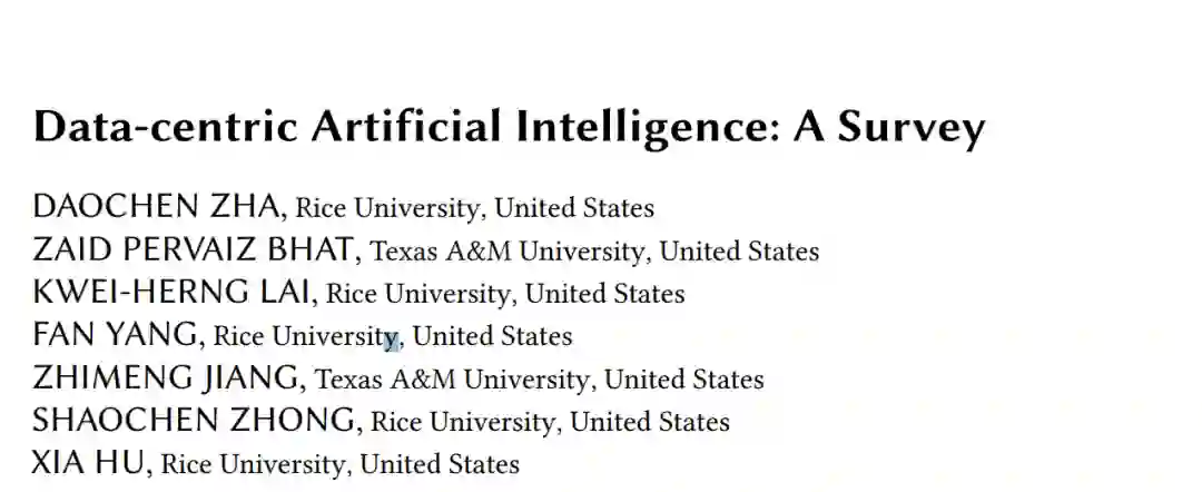 聚焦于人工智能中一个新兴而重要的研究领域——以数据为中心的人工智能。通过展示如何仔细设计和维护数据,可以使人工智能解决方案在学术界和工业界更受欢迎,激发了对以数据为中心的人工智能的需求。接下来,提供了以数据为中心的人工智能的背景,包括其定义和目标驱动的分类法。然后,以提出的研究问题为指导,从自动化和协作的角度回顾了各种以数据为中心的人工智能技术,用于不同的目的。此外,收集了来自不同领域的数据基准,并在元级别上进行了分析。最后,从全局的角度讨论了以数据为中心的人工智能,并分享了我们对数据和模型之间模糊边界的看法。同时提出了该领域潜在的未来发展方向。总而言之,我们相信数据将在构建人工智能系统中发挥越来越重要的作用。与此同时,仍有许多挑战需要解决。我们希望我们的调研可以激发我们社区的合作倡议,推动这一领域的发展。