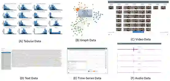 (1) 数据增强。机器学习模型只有在用数据去创建时才是准确和有用的。为此,建模过程的第一步是帮助领域专家搜索、识别并为他们的建模任务策划必要的数据。需要一个交互式工具来帮助领域专家用从知识库中获得的额外特征来增加他们的初始数据集。 (2) 数据和问题探索。领域专家拥有领域专业知识,但缺乏数据科学技能。当他们不了解应该使用哪种算法时,系统如何支持他们创建查询?我们的解决方案包括两个步骤。(a) 提供一个探索性的可视化界面,允许领域专家检查输入的数据,以及(b) 在数据的基础上自动生成一些合理的机器学习问题。在向AutoML系统发布任务之前,领域专家可以完善和更新相关的问题。 (3) 模型生成。我们将可视化界面与AutoML系统相结合。给出一个问题定义(由领域专家在上一步通过使用可视化界面生成),我们的系统要求AutoML系统执行该问题并生成一些可信的机器学习模型。 (4) 模型探索和选择。由AutoML系统生成的模型会有类似的定量指标(如准确率、F1分数等)。然而,它们往往在与领域问题相关的定性指标上有所不同。例如,疾病传播的增加是以片状线性方式进行的,还是更有可能是二次性的增加?为了帮助领域专家做出这样的判断,我们的关键见解是,模型性能的标准评价所提供的丰富数据提供了一个丰富的数据集,对它的探索将使领域专家获得对模型集合的洞察力,以执行诸如性能预测、模型选择和信任特征等任务。由AutoML系统生成的模型对领域专家来说(在大多数情况下)是 "黑盒"。因此,我们专注于开发工具,让领域专家只用这些黑盒产生的输入/输出对就能完成他们的任务。