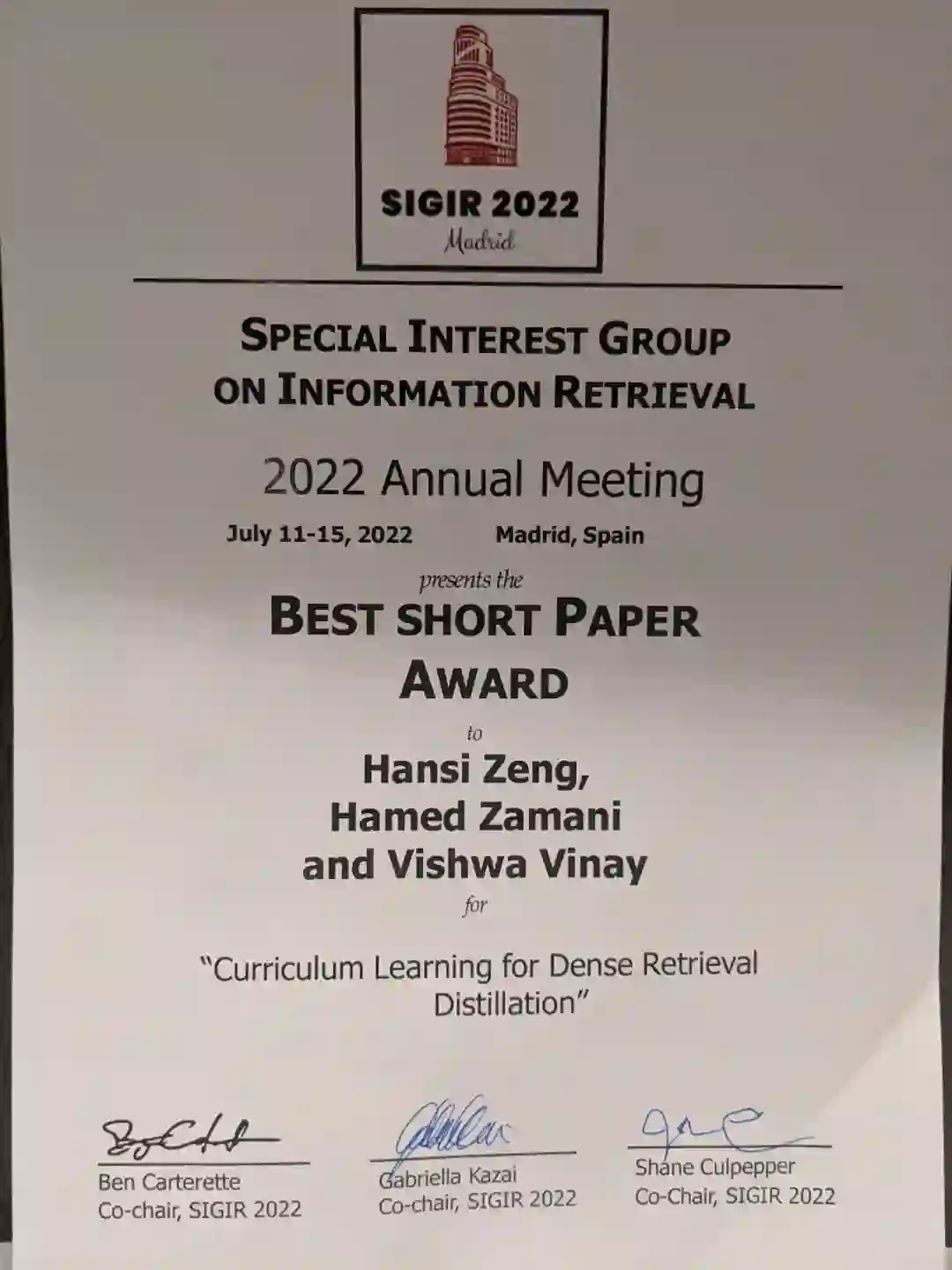 第45届国际信息检索大会(The 45th International ACM SIGIR Conference on Research and Development in Information Retrieval)将于2022年7月11日-7月15日在西班牙马德里召开。SIGIR是中国计算机学会CCF推荐的A类、清华推荐论文列表TH-CPL-A类国际学术会议,在相关领域享有较高学术声誉。这次会议共收到794篇长文投稿,仅有161篇长文被录用,录用率约20%。