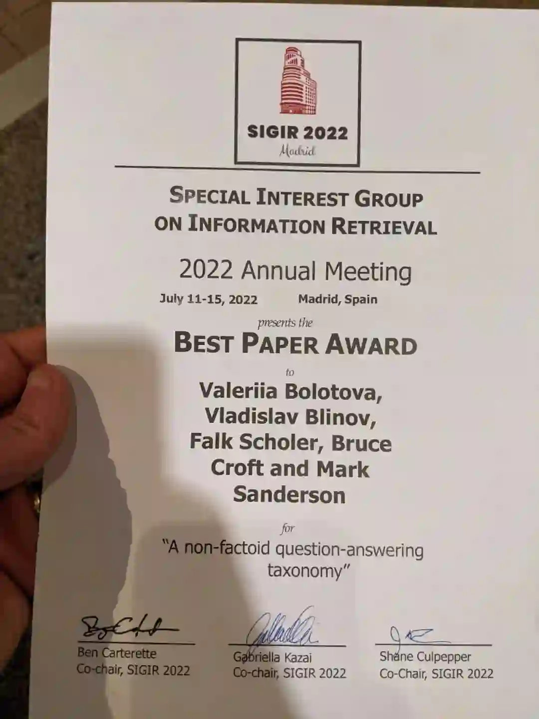 SIGIR是人工智能领域智能信息检索方向最权威的国际会议。最新组委会公布了一系列最佳论文。其中来自荷兰Radboud大学-Harrie Oosterhuis独自署名的论文获得最佳论文,山东大学聂礼强组获得最佳学生论文。