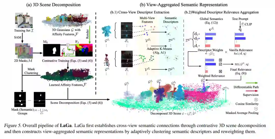 近年来,3D高斯溅射(3D-GS)在从RGB图像中进行高质量的3D场景重建方面取得了显著进展。许多研究扩展了这一范式,应用于语言驱动的开放词汇场景理解。然而,大多数研究仅仅将2D语义特征投影到3D高斯分布上,忽视了2D与3D理解之间的根本差距:3D物体在不同视角下可能呈现出不同的语义特征——这一现象我们称之为视角依赖语义。为了应对这一挑战,我们提出了LaGa(语言高斯),它通过将3D场景分解为物体,建立跨视角的语义关联。接着,它通过对语义描述符进行聚类,并根据多视角语义重新加权,构建视角聚合的语义表示。大量实验表明,LaGa能够有效捕捉视角依赖语义中的关键信息,从而实现对3D场景的更全面理解。值得注意的是,在相同设置下,LaGa在LERF-OVS数据集上相较于之前的SOTA,mIoU显著提升了+18.7%。我们的代码已开放,地址为:https://github.com/https://github.com/SJTU-DeepVisionLab/LaGa。