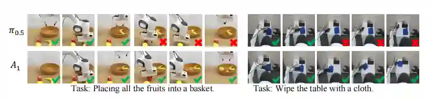 这两项技术结合,让 A₁摆脱了 “拆东墙补西墙” 的妥协优化,实现骨干网络与动作头的协同加速。