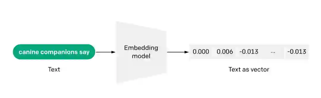 上面的表述中涉及到向量索引和检索中三个重要的概念: **文本嵌入模型**、**相似向量检索**和**向量数据库**。下面一一进行详细说明。文本嵌入模型