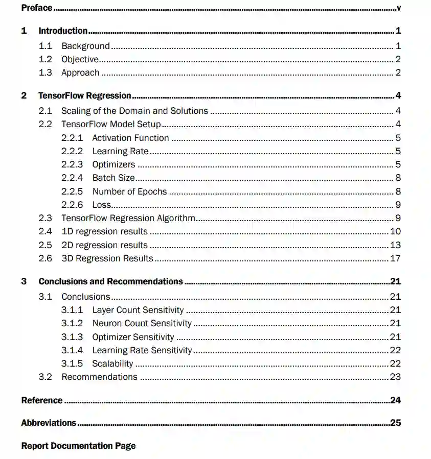 在本报告中,我们记录了机器学习(ML)回归在周期性、高度振荡和𝐶∞函数上的可扩展性和灵敏度。这项工作的动机是需要在潮汐传播等周期性问题上使用 ML 回归。在这项工作中,TensorFlow 被用来研究周期函数从一维到三维的机器可扩展性。针对一系列层、神经元和学习率,计算了每个维度的挂钟时间,以进一步研究 ML 回归对这些参数的敏感性。最后,比较了随机梯度下降和 Adam 优化器的挂钟时间和敏感性。