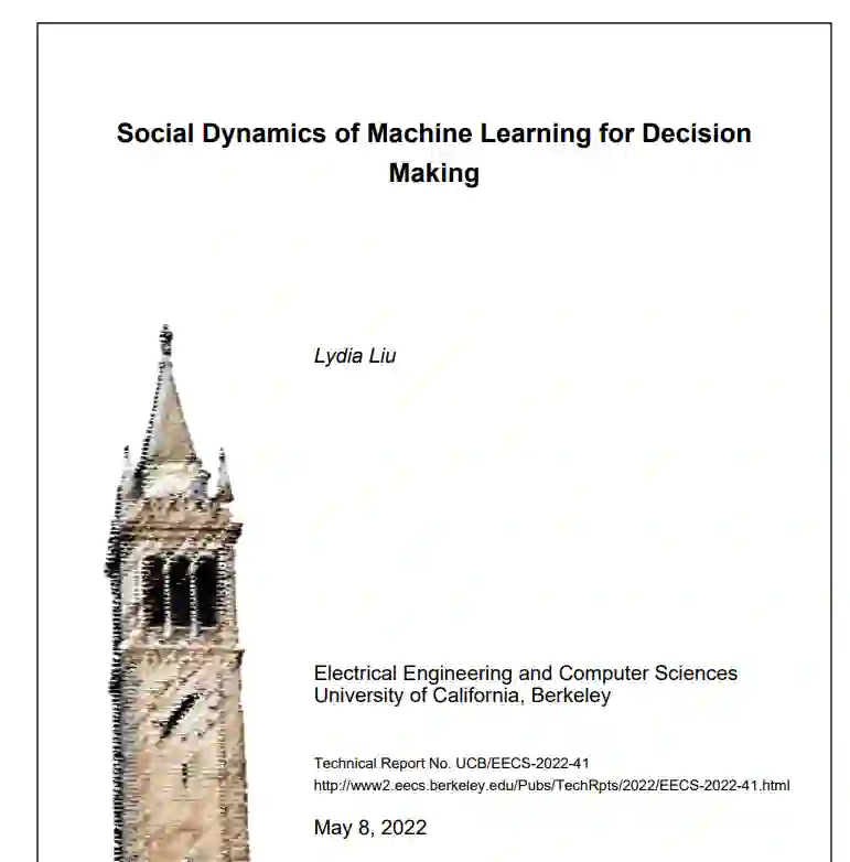 从教育到招聘,社会中的重要决策越来越依赖于数据驱动的算法。然而,算法决策的长期影响在很大程度上没有得到充分理解,在理论和实践中,确保公平利益存在严重挑战。在本文中,我从两个角度考察了机器学习算法的社会动力学:(I)算法决策的长期公平性,以及(ii)匹配市场的长期稳定性。