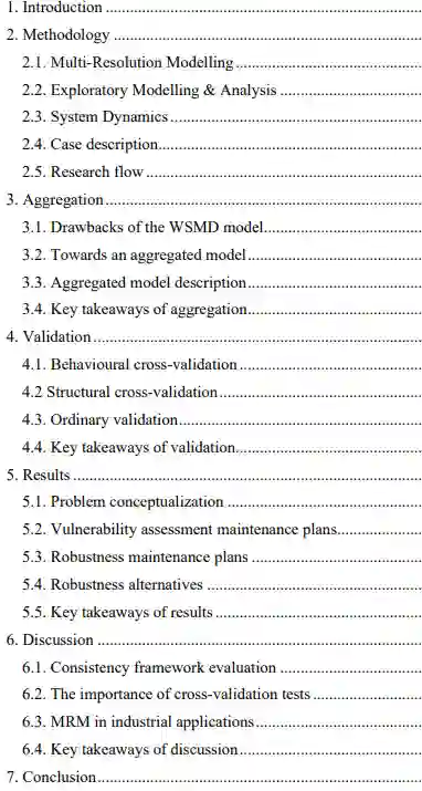 采用荷兰皇家海军现有兵力支持系统精细模型(下称"武器系统管理动态模型"WSMD),通过"聚合"方法开发新型简化模型。WSMD模型基于预设任务计划模拟军舰全寿命周期可用性,而聚合模型理论上可通过探索广泛场景下的粗略可用性扩展WSMD模型价值。尽管聚合模型的灵活性可理想补足WSMD模型复杂性,但历史表明决策者常因低分辨率模型无法捕捉关键"复杂"信息而弃用——毕竟简化必然伴随信息损失。故核心问题在于如何开发"有效"低分辨率模型以提升海军兵力支持系统鲁棒性。广义而言,本研究旨在回答: