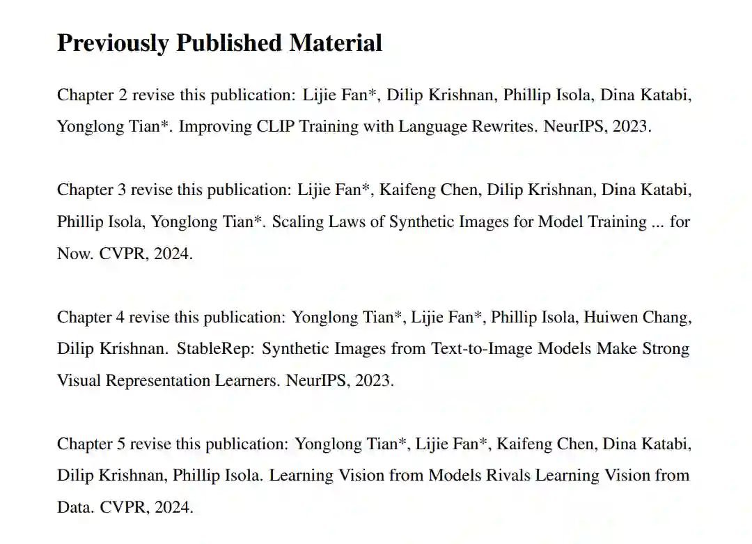 通过系统地解决与合成数据相关的挑战和机遇,本论文旨在为机器学习研究的发展做出贡献,并提供关于合成数据作为训练有效表示模型的新来源的宝贵见解。
