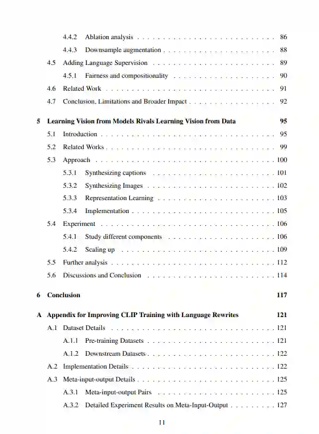 最近,使用语言监督训练视觉表示模型的兴趣逐渐增加 [93, 144]。以 CLIP [144] 等模型为代表,这一转变超越了像 ImageNet 这样的数据集中固定的、预定义的类别。训练这些模型需要大量的图像-文本对数据集。发展趋势包括从创建包含数百万图像-文本对的 Conceptual Captions 数据集 [169],到包含数十亿对的 LAION 数据集 [165]。然而,这种方法并非没有挑战。大规模的数据来源,通常通过网络抓取,带来了显著的噪声。可扩展性问题仍然存在。此外,这些数据集的巨大规模在存储和数据传输方面也带来了实际困难。例如,LAION-2B 需要数十TB的磁盘空间,下载可能需要数天甚至数周。