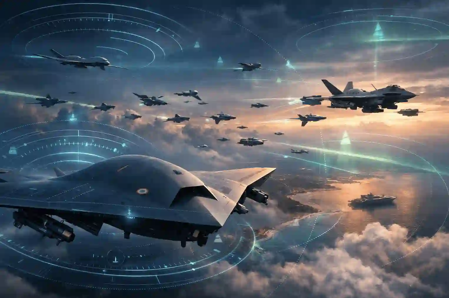 飞机自动化和数据链技术使得有人-无人协同编组成为可能。此类编组可利用价格较低的无人机优势,以及有人平台更高的灵活性和火力,而无需将更昂贵的有人机及机组成员暴露于高威胁环境中。无人机可从地面或空中母舰发射。编组成员被分配不同的角色和任务。无人“忠诚僚机”可执行情报监视侦察或战术预警任务。部分可作为诱饵。其他可承担电子战及压制敌方防空任务。重要成员可携带弹药。部分将承担情报收集及战斗毁伤评估任务。