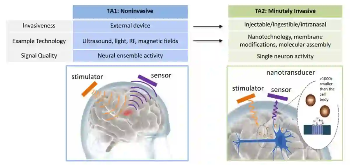 图2 两个技术领域:非侵入性和微小侵入性神经技术