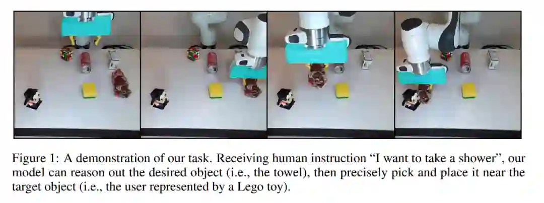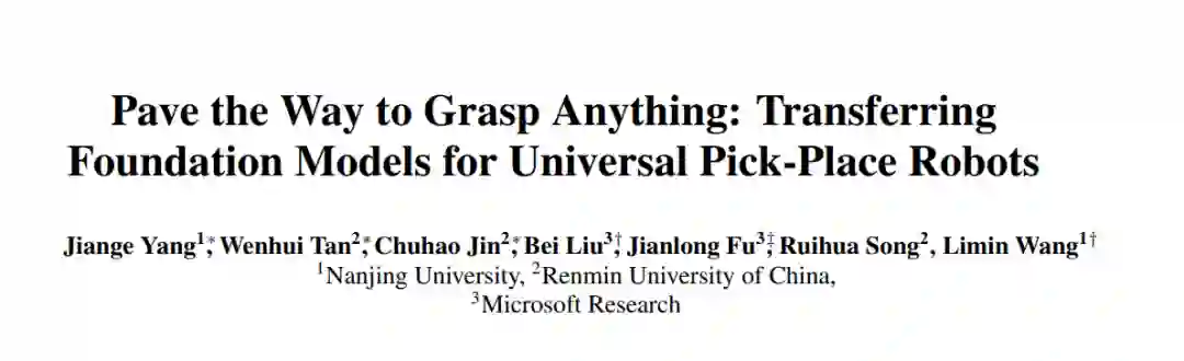 创建一个能在真实世界环境中对各种物体执行多种动作的通用机器人代理仍然是一个长期存在且具有挑战性的任务。虽然在工业场景中单一任务的机器人可能就足够了,但设计用来在日常生活中协助和与人互动的机器人需要具有高度的泛化能力。在这篇论文中,我们努力开发一个多功能的机器人模型,赋予机器人代理这种泛化能力。具体来说,我们专注于拾放任务,这在机器人操控中起着基础和关键的作用。例如,在涵盖了全面和大规模多任务厨房操控数据集的RT-1[1]中,有近85%的任务涉及到与拾放相关的动作。这个数字强调了拾放任务在实际真实世界应用中的重要性。创建多功能代理的第一个挑战是如何有效地将抽象的抓握指令转化为具体的机器人输入。目前的方法利用了各种形式,包括任务标识符[2]、目标图像[3]、展示人类示范的视频[4],以及越来越受欢迎的自然语言指令[1,4,5,6,7]。特别是语言,为人机交互提供了最自然和可扩展的方式,从而便于更容易地与机器人进行交流。第二个挑战涉及提高单一机器人模型处理多个拾放任务的泛化能力,包括视觉感知和动作执行。这就需要开发一个能够有效学习和适应广泛任务范围,同时保持效率和可扩展性的模型。 为了应对上述挑战,最近的进步[1,6,8]主要采用了基于学习的模型。值得注意的是,其中一项开创性的工作是RT-1[1],该工作引入了一个全面的模型,能够使用涵盖了17个月、涉及13个机器人的大约130,000次示范的大规模数据集来执行各种指令。然而,收集真实世界的数据需要大量的资源,而且这种方法在组合泛化方面存在限制,难以处理未见过的物体、背景或环境[1,9]。此外,一项开创性的工作MOO[9]提出了利用从开放词汇对象检测模型中获取的对象位置先验来提高效率。然而,依赖于检测只能提高视觉泛化能力。它仍然需要像RT-1[1]一样的大规模训练数据,来进行动作执行的学习。