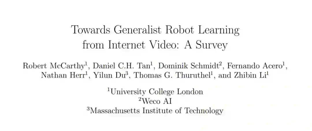 本综述提供了在强化学习(RL)和机器人技术背景下,从视频中学习(LfV)方法的概览。我们关注那些能够扩展到大规模互联网视频数据集的方法,并在此过程中提取关于世界动态和物理人类行为的基础知识。这些方法对于开发通用机器人具有巨大的潜力。