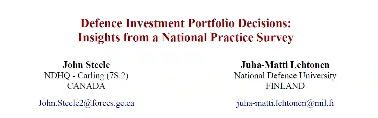 SAS-134研究任务组"将战略投资和撤资与国防成果联系起来 "的启动是为了从文献和对当前国际惯例的调查中确定在计划投资组合(PIP)中确定国防投资优先次序的最佳做法的实质性指导。对一些相关文献的调查为制定和解释国家间国防投资优先次序(DIP)的做法提供了依据。在第2.0节中,我们介绍了最相关的文献和相应的见解,然后介绍我们解释调查结果的结构。在第3.0节中,我们描述了调查的发展和执行,并在第4.1-4.6节中总结了调查结果,然后在第5.0节中简要总结。