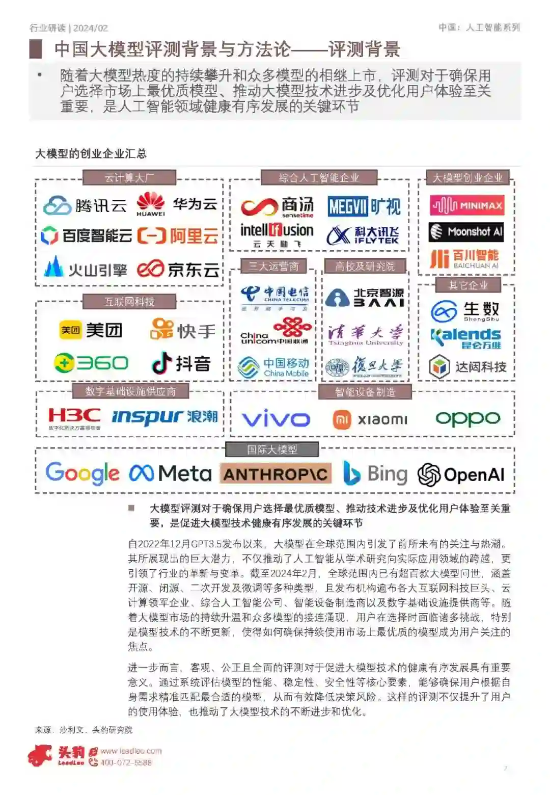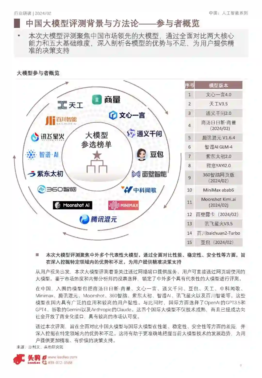 本次大语言模型评测以用户使用体验和实际使用价值为基准,综合考量知识能力、语言能力、道德风险、行业能力及综合能力五大核心一级维度,并进一步细化为风险信息识别、逻辑推理、类比迁移、角色扮演等多个二级维度,以构建全面、科学的评估体系,确保准确衡量模型的优势与不足。 2024年大语言模型综合评测显示,国际领先模型在通用基础能力和专业应用能力上略优于中国领先模型,其中文心、GPT3.5和通义千问位居第一梯队 根据2024年大语言模型综合评测结果来看,国际领先的模型整体水平略优于中国领先大语言模型的均线。根据国际大语言模型均线、中国大语言模型均线划分出了三个梯队,第一梯队包括文心、GPT3.5以及通义千问;第二梯队包括360智脑、商汤商量、智谱AI、中科闻歌雅意以及腾讯混元;第三梯队包括Minimax、面壁智能、紫东太初、百川智能以及昆仑天工。