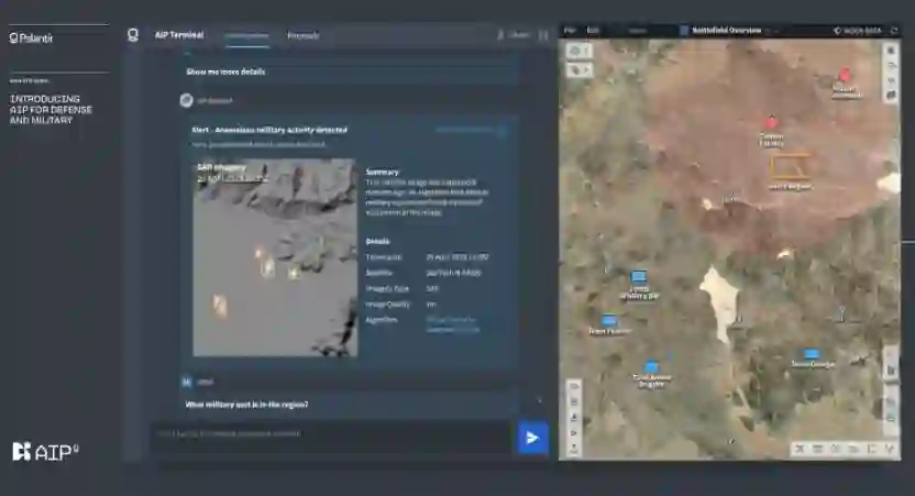 Palantir 的国防人工智能平台于 2023 年亮相,该平台依靠大型语言模型架构来辅助指挥和控制。 资料来源:Palantir