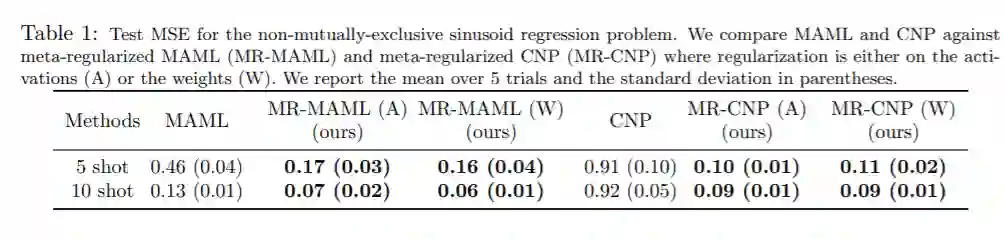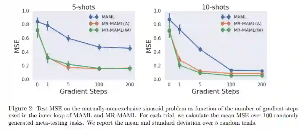 元学习已经成为一种很有前途的技术,它可以利用以前任务中的数据来高效地学习新任务。然而,大多数元学习算法都隐含地要求元训练任务是互斥的,这样就没有一个模型可以同时解决所有的任务。例如,在为少镜头图像分类创建任务时,先前的工作使用每个任务随机分配图像类到N-way分类标签。如果不这样做,元学习者可以忽略任务训练数据,学习一个模型来执行所有的元训练任务,但不能有效地适应新的图像类。这个需求意味着用户在设计任务时必须非常小心,例如通过打乱标签或从输入中删除任务标识信息。在某些领域,这使得元学习完全不适用。在这篇论文中,我们通过使用信息论设计一个元正则化目标来解决这一挑战,信息论优先考虑数据驱动的适应。这导致元学习者决定必须从任务训练数据中学习什么,以及应该从任务测试输入中推断什么。通过这样做,我们的算法可以成功地使用来自非互斥任务的数据来有效地适应新的任务。我们证明了它对上下文和基于梯度的元学习算法的适用性,并将其应用于实际环境中,在那里应用标准的元学习是困难的。在这些设置中,我们的方法大大优于标准的元学习算法。