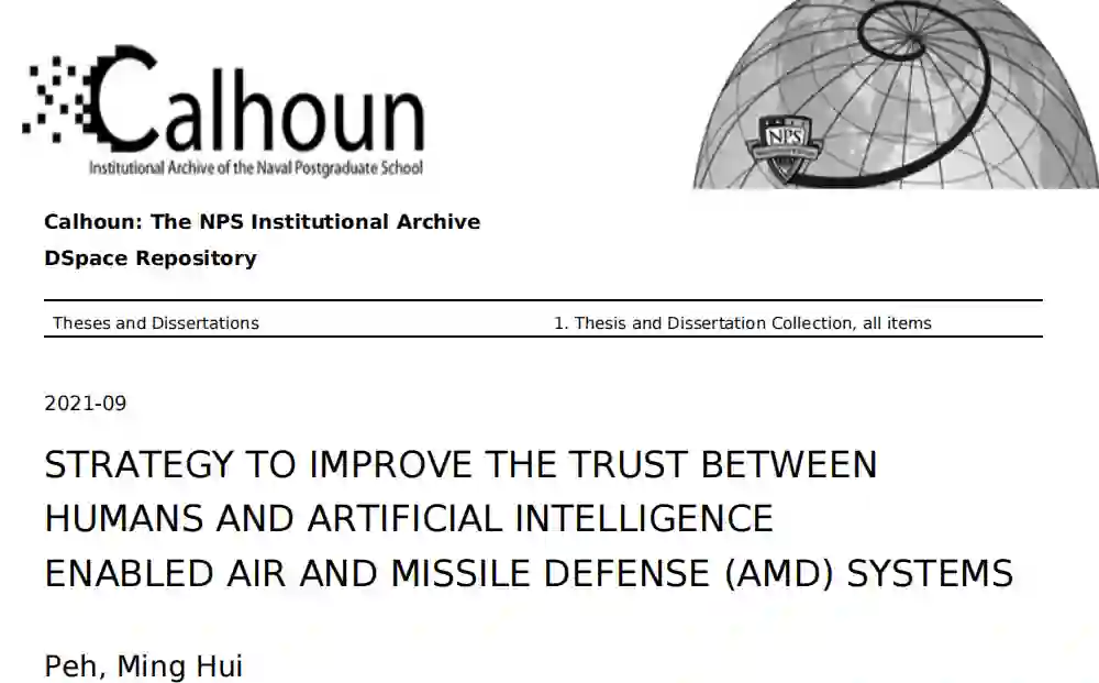 论文对信任的定义、人机交互(HMI)的概念、信任因素以及包括AMD杀伤链模型、威胁场景、架构、模型和功能在内的概念模型进行了广泛的回顾。有了这样的认识,论文提出了人工智能-AMD系统的信任框架,对人机交互和人工智能-AMD系统信任因素的描述。论文最后提出了在人类操作者和AI-AMD系统之间实现校准信任的策略。