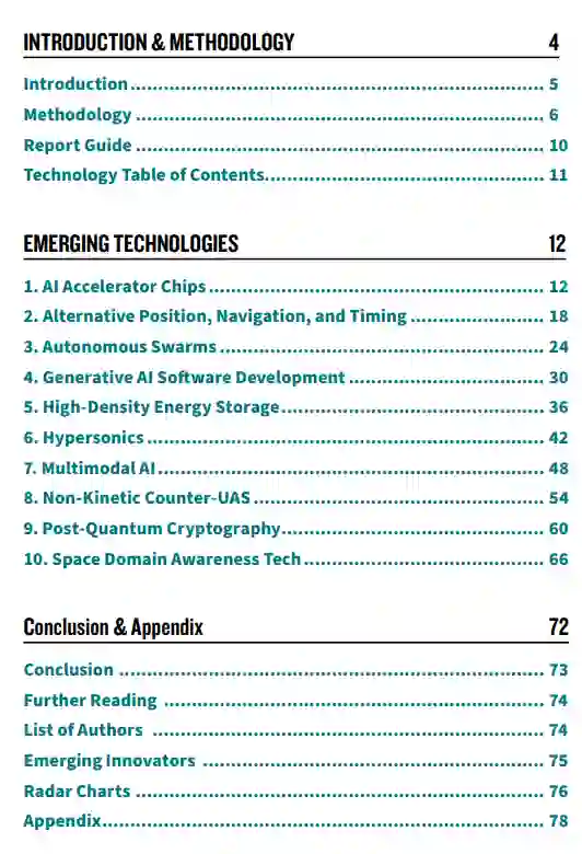 本报告的目标是重点介绍在未来一到三年内将对国防部门和战场产生越来越重要影响的新兴军民两用技术。目标是