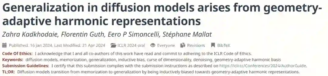本文对图像扩散模型的泛化和记忆方面进行了重要的深入分析。作者通过实证研究了图像生成模型何时从记忆输入切换到泛化模式,并通过几何自适应谐波表示与谐波分析的思想建立联系,从架构归纳偏差的角度进一步解释了这一现象。本文涵盖了我们对视觉生成模型理解中缺失的关键部分,对未来研究启发巨大。