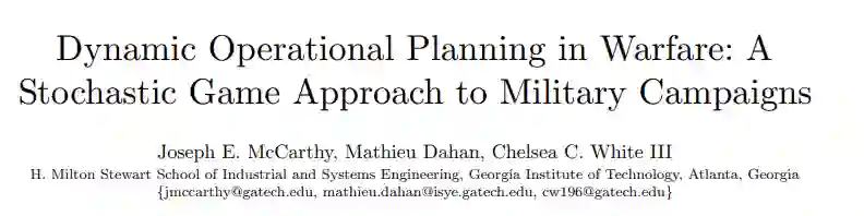 本文研究的是军事行动中动态作战规划的双人零和随机博弈模型。在每个阶段,博弈者都要管理多个指挥官,这些指挥官要对具有开放控制线的目标下令采取军事行动。当发生争夺目标控制权的战斗时,其随机结果取决于其他目标控制权所提供的行动和有利支持。每个玩家的目标都是最大限度地增加他们所控制目标的累计数量,并根据其关键性进行加权。为了解决这个大规模随机博弈,我们利用后勤和军事行动指挥与控制结构,推导出其马尔可夫完美均衡的属性。我们证明了最优价值函数相对于部分有序状态空间的等调性,这反过来又导致了状态和行动空间的显著缩小。我们还通过消除受支配的行动和研究每次迭代求解的矩阵博弈的纯均衡来加速沙普利值迭代算法。我们在一个案例研究中展示了均衡结果的计算价值,该案例研究反映了具有地缘政治影响的代表性作战级军事战役。我们的分析揭示了均衡状态下博弈参数和动态之间复杂的相互作用,为战役分析人员提供了新的军事见解。