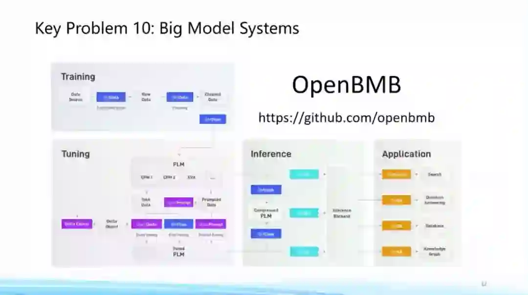 在这方面,在清华大学和智源研究院支持下,我们最近在开发一套面向大模型的支持系统,在训练、微调、推理到后处理等各个方面都能提供全流程的高效计算支持,该系统预计将在3月底正式发布。现在个别套件已经可以在网上获取,欢迎大家利用大模型系统,更好地遨游在大模型的时代,做出前沿的探索和应用。