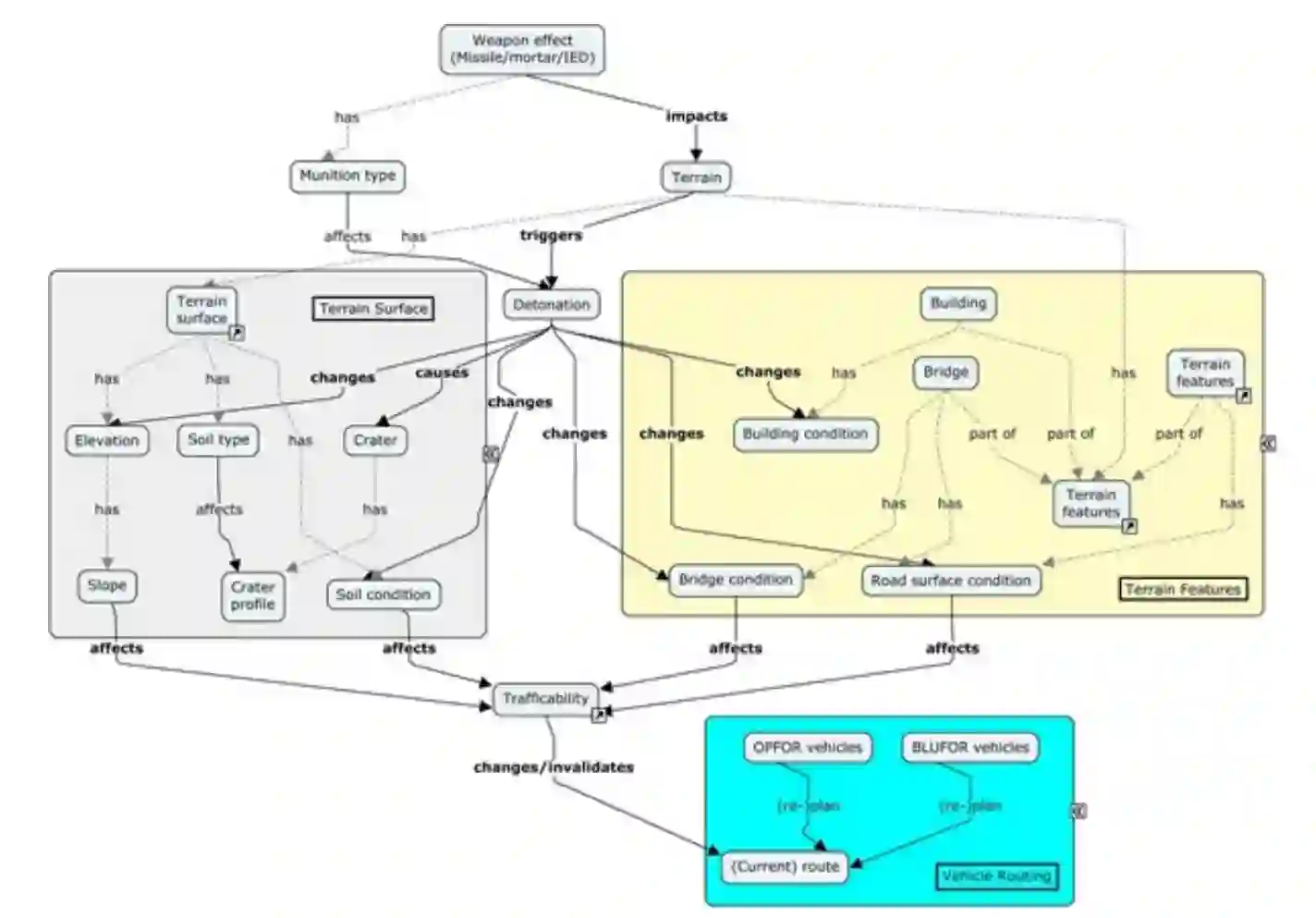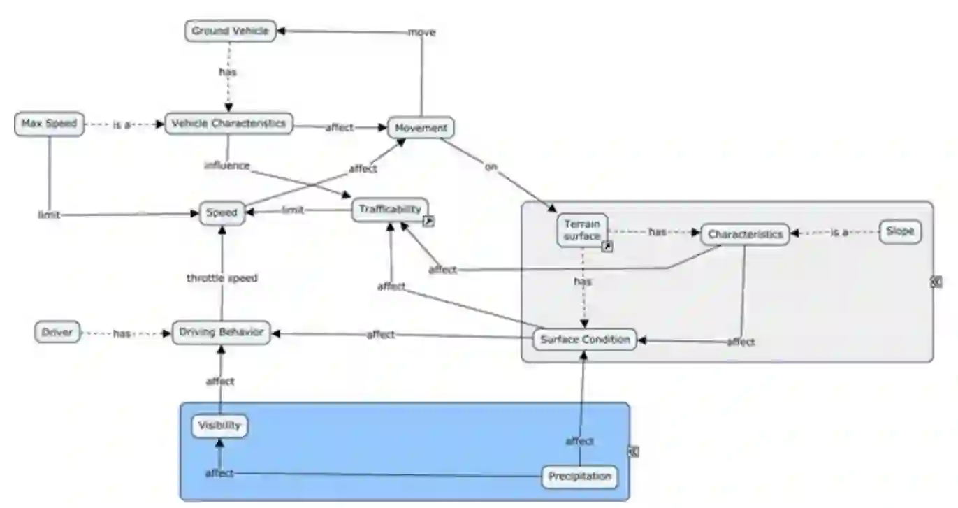 图 3-5:地形和天气对车辆通行性影响的概念模型图