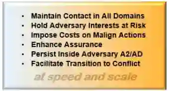 俄罗斯等的武装力量试图通过系统的、持续的压力来压倒美国和合作伙伴的部队,从而夺走友军的决策空间并使美国的平台不堪重负。在国外,对手受益于较短的作战范围,这使他们能够建立密集的A2/AD网络,并从一个战略上有利的防御态势进行战斗。联合部队必须准备好从所有领域破坏和击败这种方法。
