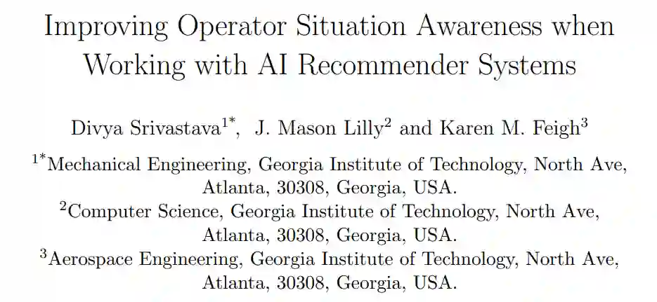 人工智能推荐系统通过向负责做出最终决策的操作人员提供建议,从而为决策支持提供帮助。然而,这些系统通常被认为是黑盒,在展示时往往没有任何背景或对底层算法的深入了解。因此,推荐系统可能会导致用户依赖性误判和态势感知能力下降。近期的工作主要集中在通过各种方式提高推荐系统的透明度,如改进推荐器对优点数字的分析和可视化,提供推荐器决策的解释,以及改进用户培训或校准用户信任度。在本文中,引入了另一种透明度技术,即调整向人类操作员展示上下文信息和推荐决策的顺序。这种技术旨在提高操作员的态势感知,从而提高操作员与推荐系统之间的共享态势感知。