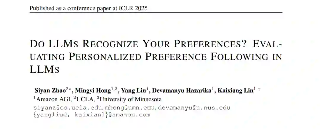 此外,我们展示了在PREFEVAL上进行微调可以显著提高性能。我们相信,PREFEVAL将成为衡量、理解和增强LLMs偏好遵循能力的重要资源,为个性化对话代理的发展铺平道路。我们的代码和数据集可在https://prefeval.github.io/获取。