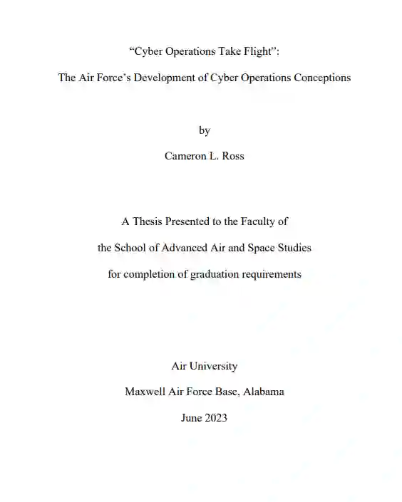 本论文虽聚焦空军网络作战理念,但任何机构对事物的认知均非铁板一块。机构由持有多元观点的个体构成,但其中某些观点会获得主导地位,形成所谓"组织思维"或"组织世界观"。本文通过检视与网络作战相关的对话、修辞及机构内部讨论,追溯这种组织思维的演进轨迹。研究资料涵盖内部文件、条令、公开政策、战略声明、军种出版物、教学材料及军官职业军事教育论文。需指出,公开论述与机密行动之间存在差异——所言与所为未必完全一致。受限于非密资料来源,本分析必然存在局限,完整叙事需待更多作战信息解密后方能构建。尽管如此,上述非密资料仍能深度揭示当时的网络作战战略思维,其中诸多文件对预算分配、组织架构及统筹军种行动的宏观叙事产生过重大影响。军官学术论文与机构期刊文章则通过个体视角及群体关注焦点的历时性变化,为理解内部讨论提供补充视角。因此,本文虽需在未来更多资料解密后修正,仍可视为网络作战组织思维史的初步构建。