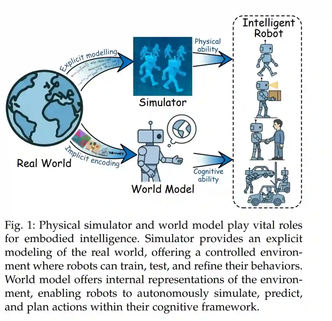 第 4.1 节:主流模拟器综述 * 第 4.2 节:物理仿真能力 * 第 4.3 节:渲染能力 * 第 4.4 节:传感器与关节组件支持 * 第 4.5 节:讨论与未来展望 * 第 5 节: 介绍世界模型的代表性架构与核心作用。