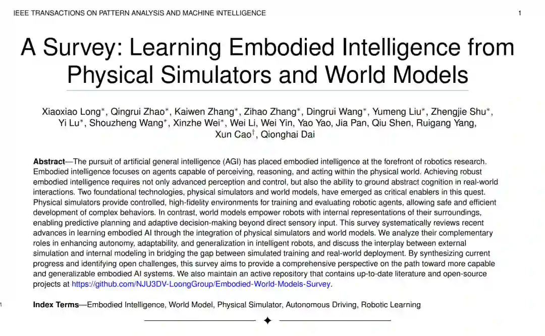 https://github.com/NJU3DV-LoongGroup/Embodied-World-Models-Survey。 关键词—具身智能,世界模型,物理模拟器,自动驾驶,机器人学习