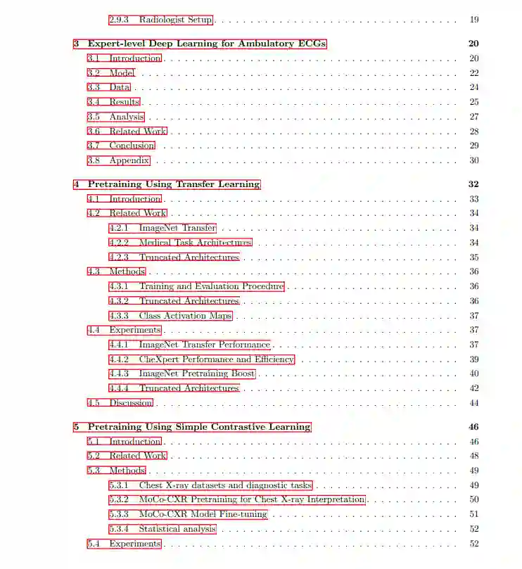 在过去的几年中,深度学习和医学的交叉领域取得了快速的进展,特别是在医学图像的解释方面。在这篇论文中,我描述了为医学图像解释的深度学习技术的发展带来挑战和机遇的三个主要方向。首先,我讨论了专家级医学图像解译算法的发展,重点是转移学习和自监督学习算法,设计用于低标签医疗数据设置。其次,我将讨论高质量数据集的设计和管理及其在推进算法开发中的作用,重点是使用有限的手工注释进行高质量标记。第三,通过系统分析临床相关分布位移下的性能的研究,我讨论了医学图像算法的真实评估。总之,这篇论文总结了这些方向的关键贡献和见解,以及在医学专业的关键应用。