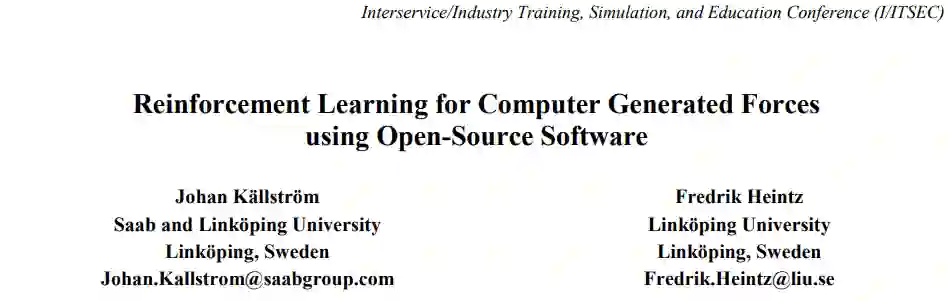 为计算机生成兵力(CGF)创建行为模型是一项具有挑战性且耗时的任务,通常需要具备复杂人工智能算法编程方面的专业知识。因此,对于了解应用领域和培训目标的主题专家来说,很难建立相关的场景并使培训系统与培训需求保持同步。近年来,机器学习作为一种为合成智能体建立高级决策模型的方法,已显示出良好的前景。这类智能体已经能够在扑克、围棋和星际争霸等复杂游戏中击败人类冠军。我们有理由相信,军事模拟领域也有可能取得类似的成就。然而,为了有效地应用这些技术,必须获得正确的工具,并了解算法的能力和局限性。