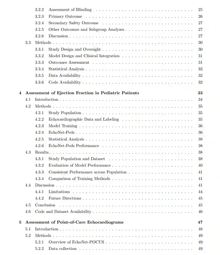 机器学习由于引入了大量的大数据集,计算能力的增加和新的模型架构而得以迅速发展。这些进步使得机器学习在医学中的重要应用成为可能,因为在医学领域许多关键任务对临床医生来说是繁琐且耗时的。在这些场合使用机器学习有机会简化临床医生的工作流程并减少错误。本论文展示了在心脏病学,病理学和RNA测序方面使用机器学习的工作。本论文首先介绍了机器学习在心脏病学中的几个应用。心脏病学中最常用的诊断工具是心脏超声图,即心脏的超声波检查。心脏功能的一个关键指标是射血分数,通常由人类专家通过手动标注心脏超声图视频来评估。第2章介绍了EchoNet-Dynamic,这是一种用于从心脏超声图评估心脏功能的算法。EchoNet-Dynamic自动提供了评估患者射血分数所需的标注。接下来,第3章中,EchoNet-Dynamic被集成到临床系统中,并通过盲法随机临床试验进行评估。在这次试验中,心脏病学家更倾向于使用EchoNet-Dynamic进行的初步评估,而不是超声技师进行的初步评估。最后,第4章和第5章介绍了将该算法扩展到儿科患者和急诊科现场护理心脏超声的内容。然后,本论文介绍了在病理学和RNA测序方面的工作。用于病理学的显微镜图像具有非常高的分辨率,提供关于细胞形态的详细信息,同时评估起来也非常耗时。首先,第6章介绍了使用常用的组织化学染色样本来预测免疫组化染色的工作,这有助于识别感兴趣的蛋白质并帮助疾病诊断。另一个提供关于组织样本详细信息的工具是RNA测序。第7章通过从显微图像估计空间转录组测量来结合病理学和RNA测序,识别组织切片内的丰富空间信息和异质性。最后,第8章介绍了从单细胞RNA测序数据预测患者表型的工作。