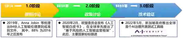 起于2020年,以政策讨论为主。2020年2月,欧盟委员会发布《人工智能白皮书》,在全球率先提出了“基于风险的人工智能监管框架”。此后,主要国家纷纷跟进,均在不同程度开展了监管人工智能相关技术及应用的探索。因此,2020年也常被称为“人工智能监管元年”。 据OECD的最新监测,全球已有60余个国家提出了700余项人工智能政策举措,而德勤全球(Deloitte Global)则进一步预测 ,2022年将会有大量关于更系统地监管人工智能的讨论。 人工智能治理的3.0阶段