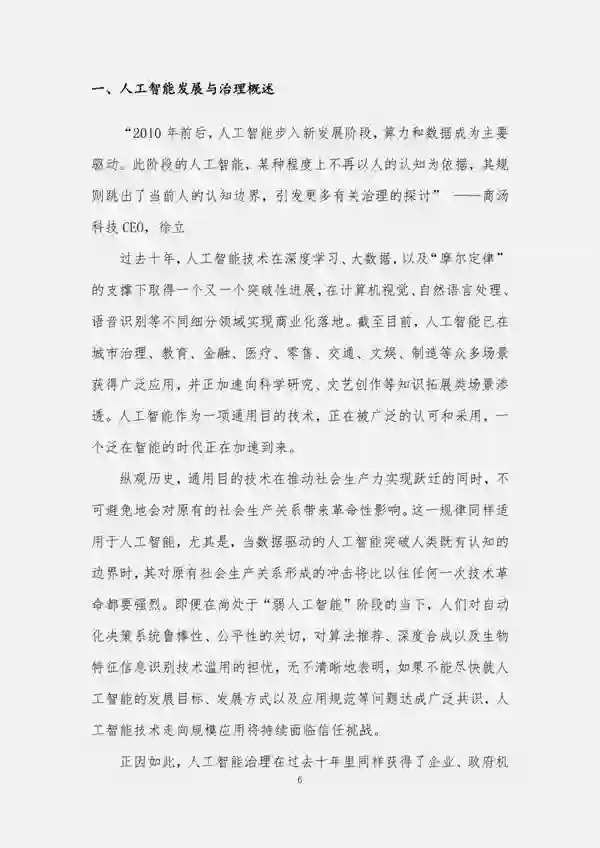 随着人工智能技术高速发展,加强人工智能伦理与治理成为大势所趋。近日,商汤科技发布《“平衡发展”的人工智能治理白皮书——商汤人工智能伦理与治理年度报告(2022年)》(以下简称“报告”),系统呈现了商汤在推动AI治理落地进程中的洞察、思考、目标与实践。 报告提出,从发展历程看,人工智能治理至今先后经历了三个发展阶段,目前,已进入落地实践阶段,即人工智能治理3.0阶段。
