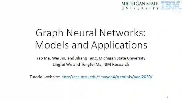 来自密歇根州立大学的YaoMa, Wei Jin, andJiliang Tang和IBM研究Lingfei Wu与 Tengfei Ma在AAAI2020做了关于图神经网络的Tutorial报告,总共305页ppt,涵盖使用GNNs对图结构数据的表示学习、GNNs的健壮性、GNNs的可伸缩性以及基于GNNs的应用,非常值得学习。