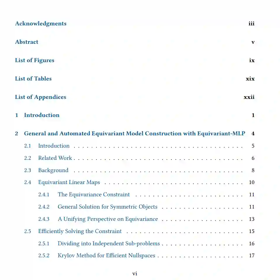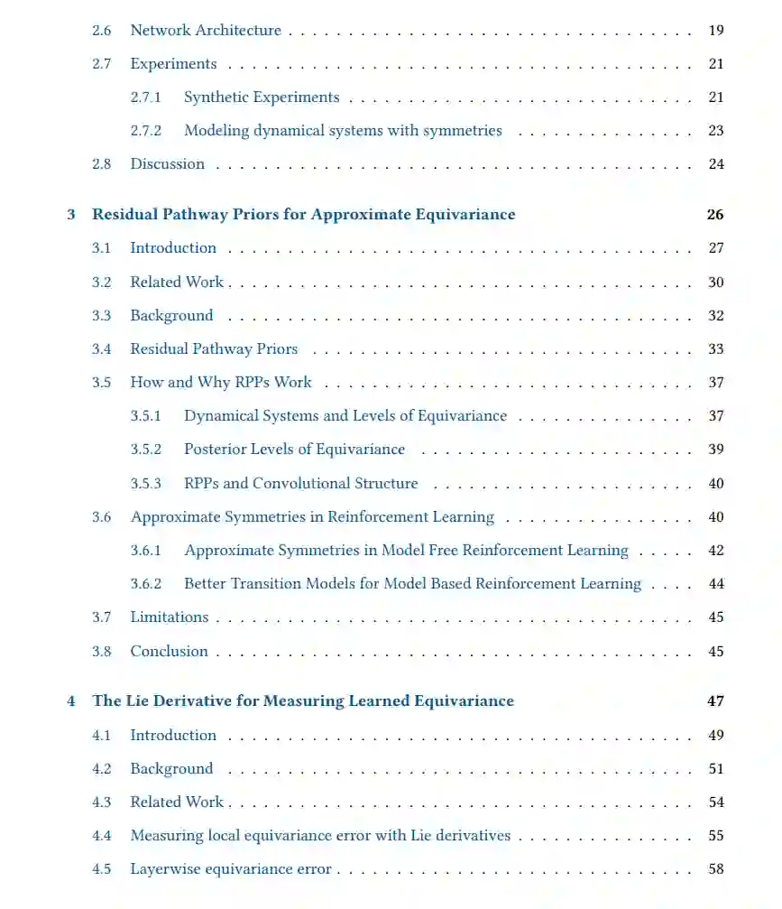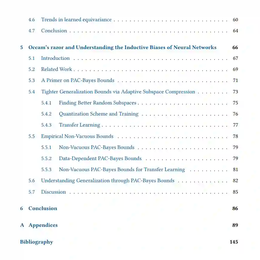 为了克服深度学习模型的巨大样本复杂性,我们可以利用人类和科学知识的基本元素,并将这些元素融入我们的模型中。通过这样做,我们可以短路数千年的进化发展,这使得人类能够迅速学习,并且提供了一个框架来适应新知识。在这项工作中,我开发了将数学归纳偏见融入我们模型的新方法,使它们偏向于反映我们的先验知识和我们的知识。这项工作有助于拓宽等变模型构建的范围和自动化,跨越多个领域,揭示归纳偏见在学习和泛化中的作用,并开发新的机器学习模型,用于科学应用,捕捉相关的科学知识。 人工智能的一个关键方面是能够从数据中学习并泛化到新的、以前未见过的情况。深度学习模型在各个领域(从计算机视觉到自然语言处理)已展示出令人印象深刻的性能。然而,它们的成功往往需要大量的数据和计算资源。这一局限性提出了一个根本问题:我们能否将人类和科学知识的基本元素注入我们的模型中,以加速学习和改善泛化?这个问题的答案是本论文的中心焦点,我们探索了将数学归纳偏见融入模型的新方法,使模型偏向于反映我们的先验知识和我们的知识。 在自然界中发现的丰富的对称性和等变性长期以来一直是寻求构建更稳健和高效模型的研究者的灵感源泉。通过直接将这些属性编码到我们的模型中,我们可以潜在地实现更快的学习、更好的泛化和提高可解释性。在这篇论文中,我们首先开发了一种用于构建矩阵群的等变层的完全通用算法,称为Equivariant-MLP,将设计等变网络的任务(至少对于低维数据)转化为纯计算问题。通过Equivariant-MLP,我们帮助降低了在动态系统、粒子物理学和机器人学等多个领域构建高效学习者的门槛。 在灵活性和归纳偏见之间找到正确的平衡仍然是一个持续的挑战,就像其他结构一样,对称性常常被真实数据的混乱现实所破坏。为了解决这种紧张关系,我们引入了残差路径先验(Residual Pathway Priors,RPPs),一种将硬体系结构约束转化为软概率先验的方法。RPP指导模型朝着结构化的解决方案发展,同时保留捕捉额外复杂性的能力,并帮助以贝叶斯方式编码我们的信念。我们展示了RPP在各个领域的广泛适用性,包括强化学习,在那里我们的方法超越了基线模型自由代理,并改善了基于模型的强化学习中学习到的转换模型。 为了更好地理解等变性在不同架构和训练方法中的影响,我们引入了李导数。李导数是一种强大的数学工具,用于测量等变性,并使我们能够识别和隔离由特定网络层产生的等变性失败。通过分析数百个预训练模型,我们揭示了模型大小、准确性和等变性之间关系的惊人见解。我们的发现挑战了传统的叙述,并强调了更好的训练策略对等变性受到尊重的程度的影响。 最后,为了更深入地理解深度学习为什么有效,我们开发了一种证明深度神经网络上PAC-Bayes泛化界限的新方法。这种方法在图像任务上产生了最先进的泛化界限,并使我们能够更好地理解模型大小、迁移学习、等变性以及模型中的结构与数据中的结构对齐程度的作用。我们的发现揭示了大型模型可以被压缩到比以前所知的更大程度,支持奥卡姆剃刀,并提供了关于归纳偏见和泛化之间相互作用的新见解。 总之,这篇论文代表了我们在如何将数学归纳偏见融入深度学习模型方面理解的重大进步。通过拓宽等变模型构建的范围和自动化,揭示归纳偏见在学习和泛化中的作用,并为科学应用开发新的机器学习模型,捕捉相关的科学知识,我们希望不仅推动深度学习可能性的边界,而且激发出在追求能够迅速学习、有效泛化并尊重自然界原则的人工智能方面的新研究途径。